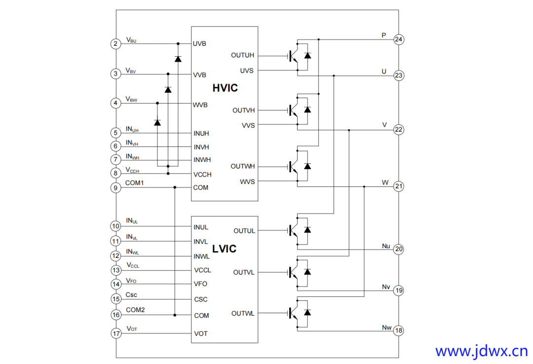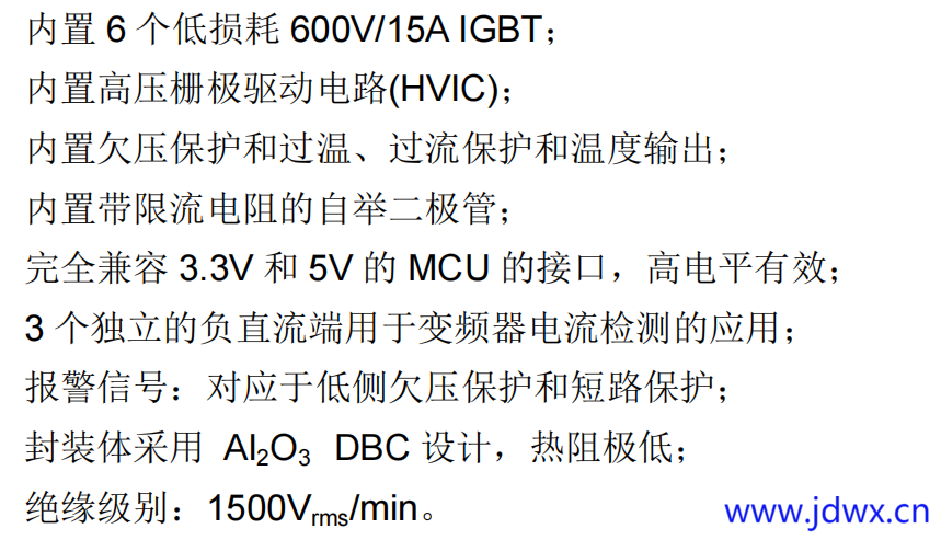 其内部框图,可以看出集成了3相全桥和IGBT驱动: