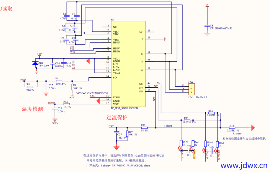 虽然电阻值很小(比如几毫欧),但长导线上的压降(mV级)和采样电压相当(如IPM中 CSC 脚保护电压只有 0.43V),误差不可忽视。